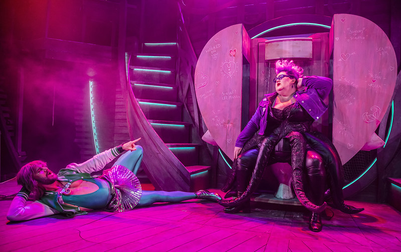 Adam King’s lighting design is gloriously bold throughout, taking us on land and ‘under the sea’ effortlessly- particular highlights during scenes in Ursula’s lair.