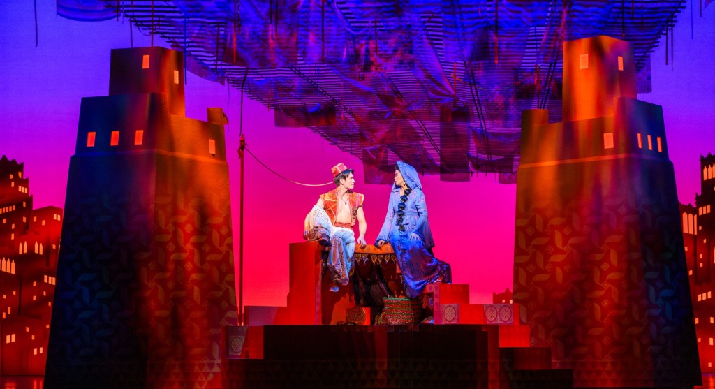 The famous flying carpet sequence is a production highlight (Special Effects Design by Jeremy Chernick). A mesmerising scene leaves the audience open-mouthed in awe and there were definitely tears in a certain reviewer’s eyes, seeing a childhood favourite scene brought to life in glittering real time.