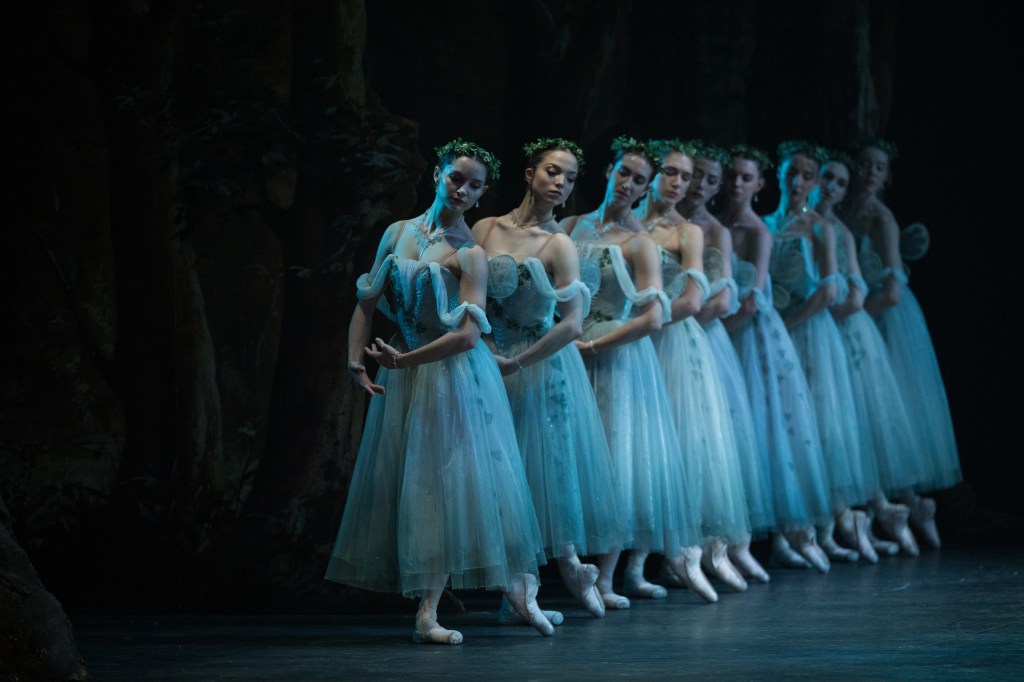 In a world where production value is often at the forefront of directorial choices, it is somewhat refreshing for a rousing orchestra to strike up composer Adolphe Adam’s classic score- before the grandiose velvet curtain lifts to reveal a rich but simple set. Tonally apt (especially for the time of year), autumnal scenery frames a small Rhineland village, who are celebrating their annual wine festival. Plot-wise, there are few frills. Whilst it has its benefits, it does sometimes leave one contemplating if this traditional tale could use a little spicing up by way of sub-plot- though this could just be the year 2024 talking. In this most faithfully authentic of versions, there are little to no distractions from the story-telling, driven by a beautiful blend of dance and mime. It’s evident that the cliché is right there; it’s practically in touching distance; yet the emotional investment of the entire company casts such a convincing spell of realism that it never steps into it. Even with its brazen second act foray into the supernatural (cutting in its contrast to the whimsy of Act 1), this unexpected narrative journey leads us to the production highlights that are ‘The Wilis’- the friendly face of evil, veiled brides who died before their wedding day, broken-hearted and restless in their graves. Aided by simplistic yet effective lighting design (originally by Charles Bristowe and recreated by David Mohr), the troupe, led superbly in her debut role by Julia Conway as Myrtha- Queen of the Wilis, transcend. None of this should work- yet, somehow, it does. (Although I definitely missed some of the more in-depth details which proved to be invaluably printed in the programme…)