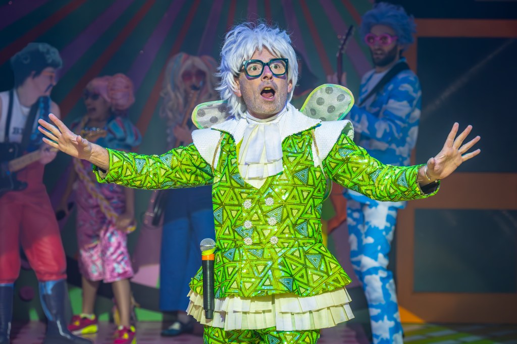 This year, Jude Christian takes the reins of the book with Adam Keast, who by this point should be paying rent, with it being his 22nd panto at the Everyman- as script consultant. Upon entering the theatre, it’s clear the audience are in for a treat from Janet Bird’s set design. A visual feast of shapes and colours fill the space, and a stunning, hair-like construction of ‘Rapunzel’ takes pride of place above the band (just in case you forgot what you were here to see.)