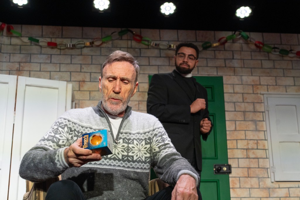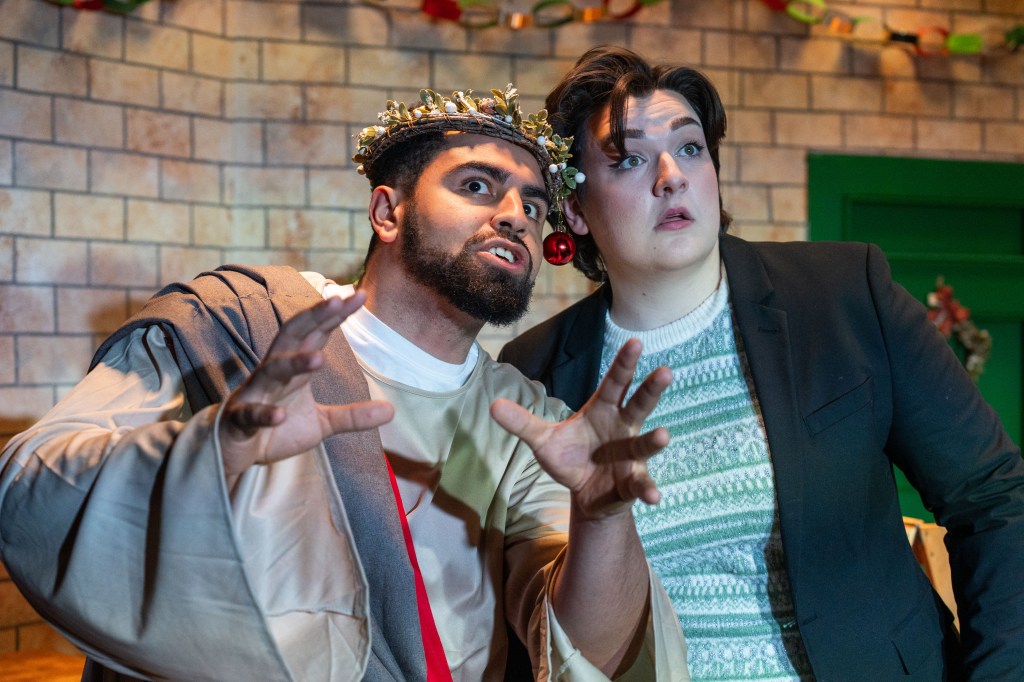 The cast is comprised of Tasha Dowd, Lynn Francis, Elliott Kingsley and Joe McGann, all of whom give strong performances in each role they’ve been assigned. Dowd grabs every comedic opportunity and runs with it. Their expressions and physicality are sound, and my eyes were drawn to them in every stolen scene. Francis, as usual gives a flawless performance showing her versatility as an actress. She’ll make you laugh until you hurt but give her a dramatic role, and she’ll pull at your heartstrings. Kingsley makes the most of the roles he’s given, particularly shining as an interrogatee and as an interpretation of Judas which is reminiscent of Bez of the Happy Mondays. Rounding up the cast, McGann gives stellar performances throughout, from an angry Brummie turtle dove to someone spending their Christmas alone for the first time- I’ll say no more because I’ll cry.