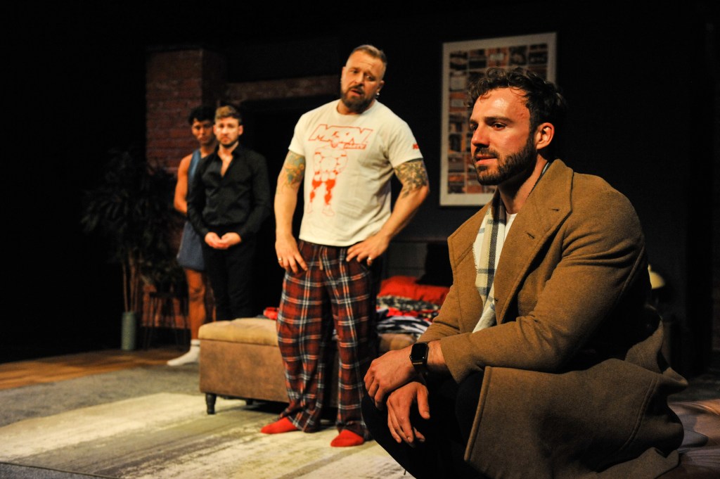 The quintet of performers brings Zane’s characters to life with ease. David Paisley, as Ben—the patriarch of the group (don’t call him Daddy)—grounds the production, giving a warmth often missing from gay characters on stage. Eddie Ahrens takes you on a rollercoaster of emotions in his role as Kam, perfectly executing the one-liners Zane’s hilarious script delivers—a perfect contrast to Matthew Mitcham as Simon, who effortlessly plays the ‘mean gay’ role. James Colebrook, as Russell, excels in Act Two, when his usually intellectually challenged character steals one of the final scenes through his moving portrayal, adding another layer to this dynamic piece. Although a completely underutilised character, Gabriel Clark as AJ steals the show. His journey from the newest ‘chicken’ of Canal Street to educated twink is heart-wrenching, and Clark gives a perfect performance.