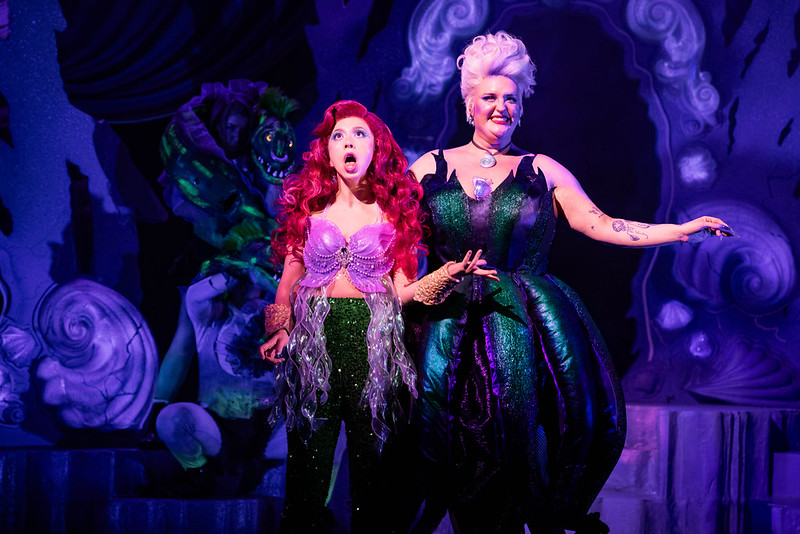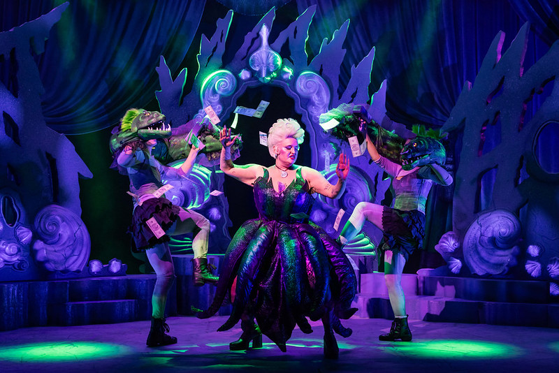 Adam King’s lighting design remains a standout- bold, dynamic, and richly atmospheric. His transitions between land, sea, and Ursula’s lair are seamless and often visually stunning, heightening the fantasy while grounding the comedy.