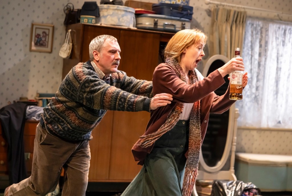 The production’s design supports this sense of realism without demanding attention. Katie Scott’s set feels comfortably worn rather than theatrically arranged; it’s a domestic environment that suggests years of compromise, neglect and emotional hangovers. Laura Howard’s Lighting Design is used with restraint, shaping mood and focus subtly rather than signalling emotional beats too insistently. Together, they create a space that feels both recognisable and functional- a container for memory rather than a metaphor for it.