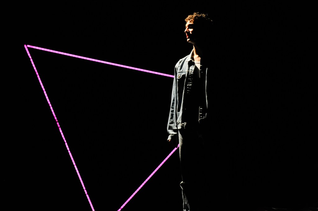 Upon entering Hope Mill Theatre, the sparse, fragmented set design from Dick Longdin, which, although a stark contrast from previous works in aesthetic, takes on a silent character of its own while still packing punch in his attention to detail. Highlighted by David Clare’s lighting design, an inverted pink triangle, the symbol used in Nazi Germany to identify the ‘lowest of the low’, homosexuals. The symbol was later reclaimed by the queer community as a sign of protest and although life has changed dramatically since these bygone eras, the persecution and stigmas represented in this production are still rampant today.