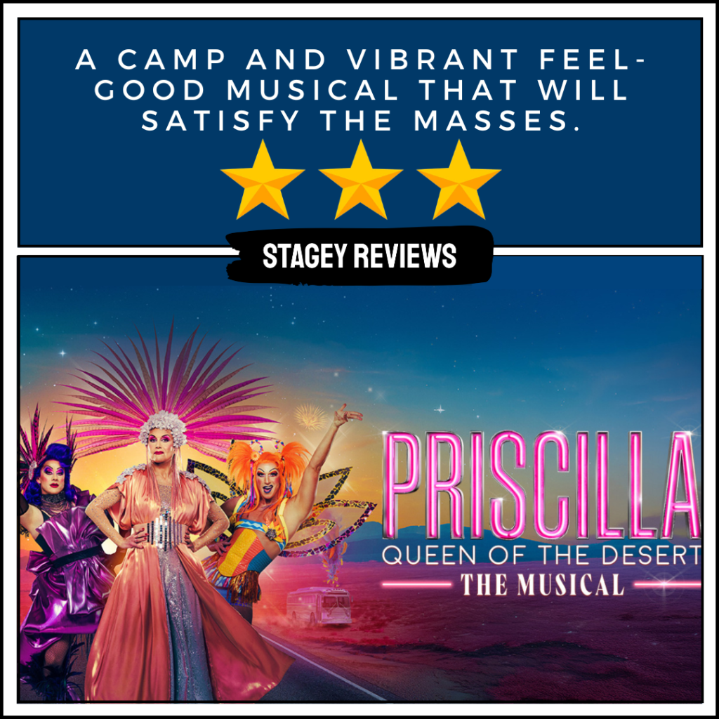 Priscilla Queen of the Desert the Musical is the kind of show that will polarise audiences. For the average theatregoer looking for a camp and vibrant evening, this is a feel-good musical to give you enough escapism on a rainy winter’s evening. However, for theatre purists looking for finesse, substance, and a night without outdated stereotypes, probably best to catch the next bus.